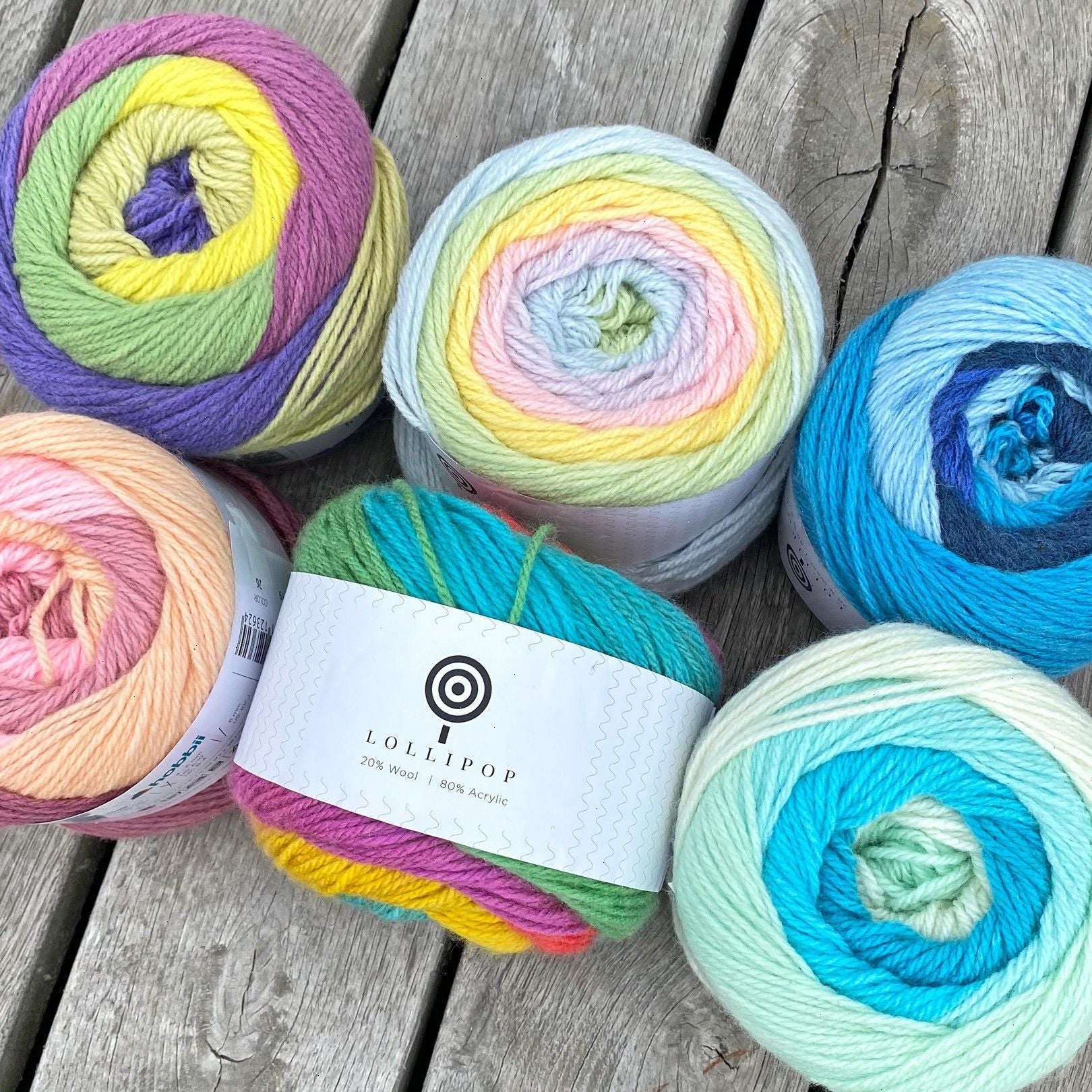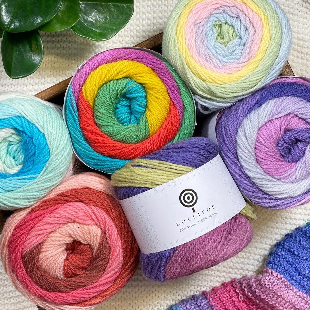 Lollipop is a magical yarn with long beautiful color changes, which comes in large delicious 200-gram yarn balls with a yardage of 350 meters. The yarn consists of 20% wool and 80% acrylic, which, first of all, makes it easy to work with and, secondly, ensures that your projects will be nice and warm to wear.