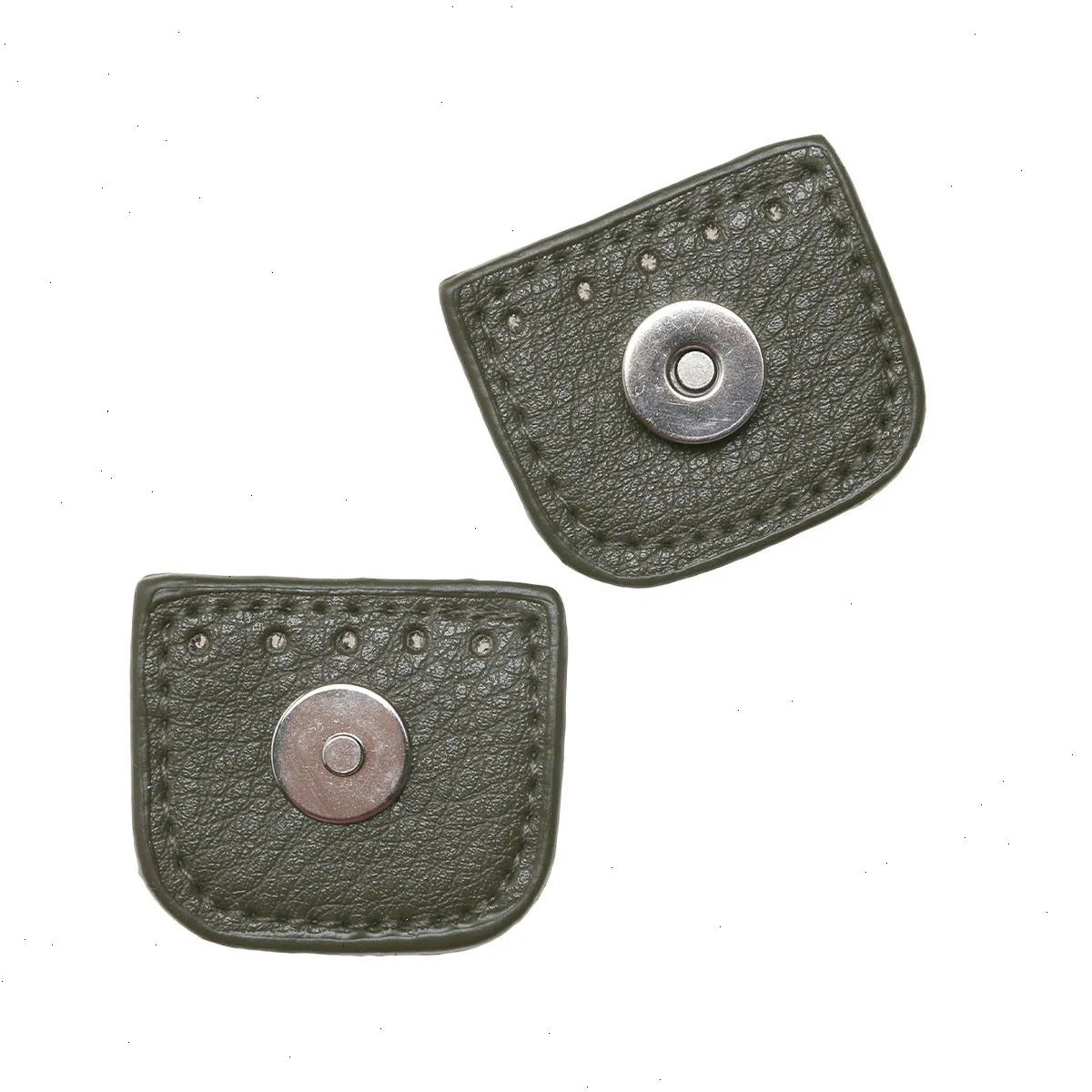 You get a set of magnetic buttons in PU leather.