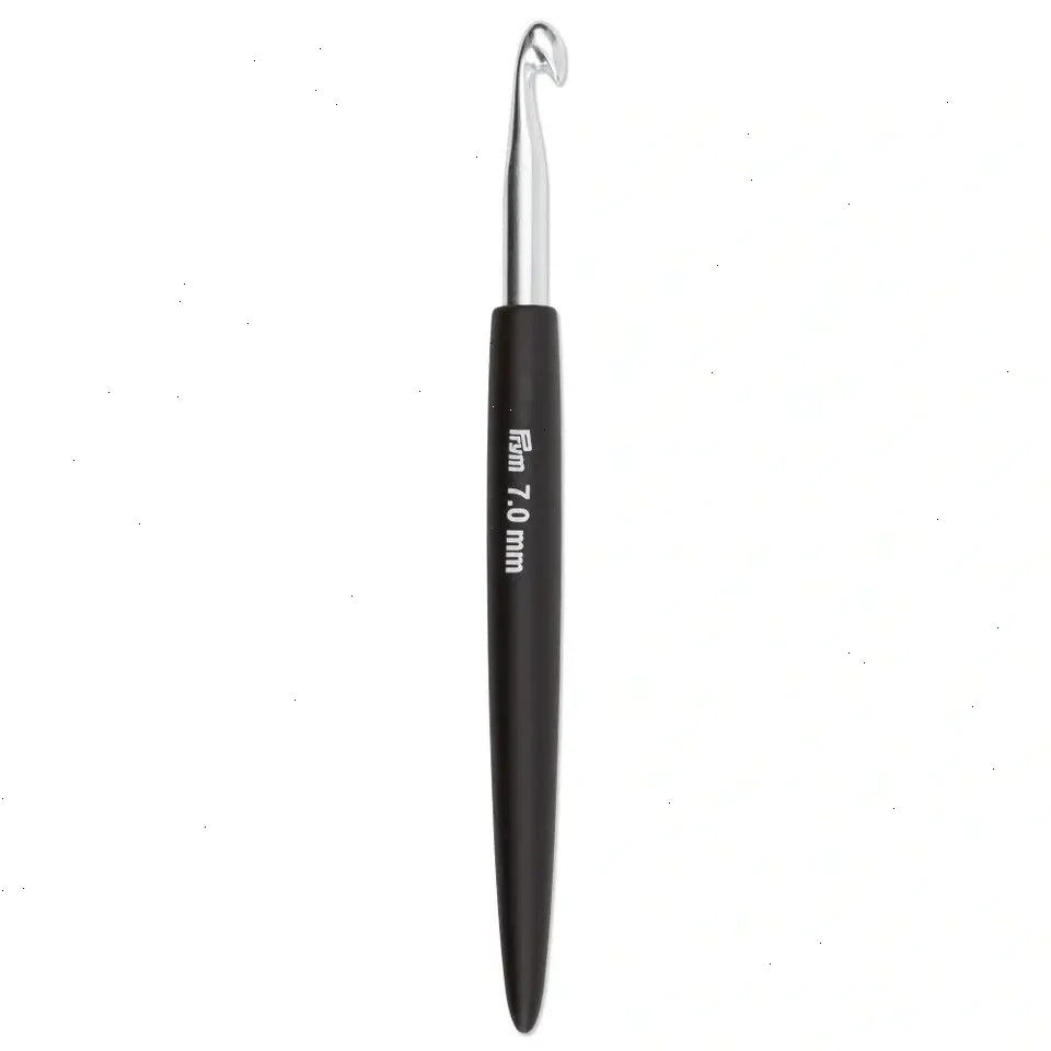 Here is a good quality crochet hook from Prym with soft grip, which feels soft and comfortable in your hand without it slipping. It even adapts to your hand as you work. This crochet hook for wool, in silver metal, is an idea for when you crochet hats, bags, scarves, blankets and other accessories.