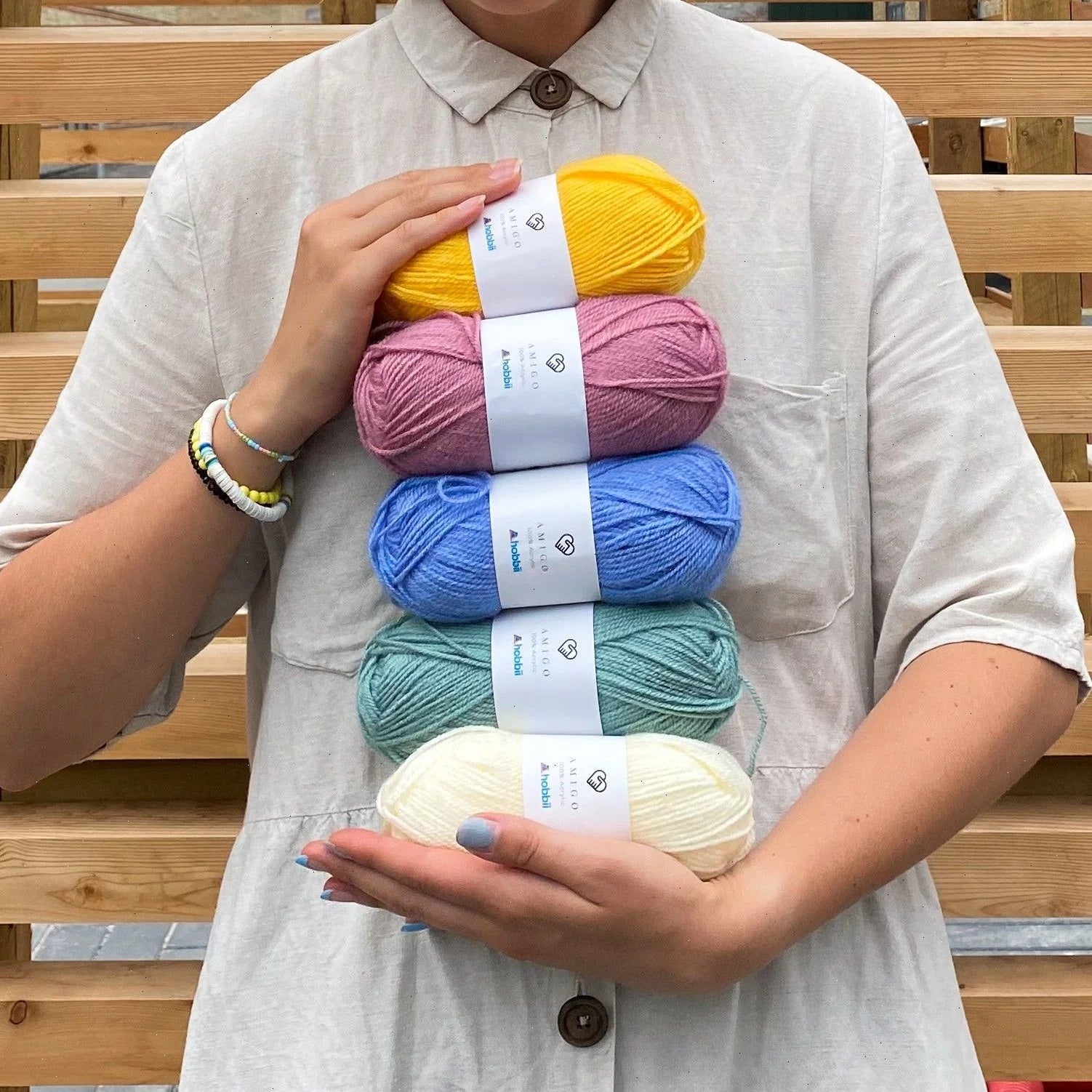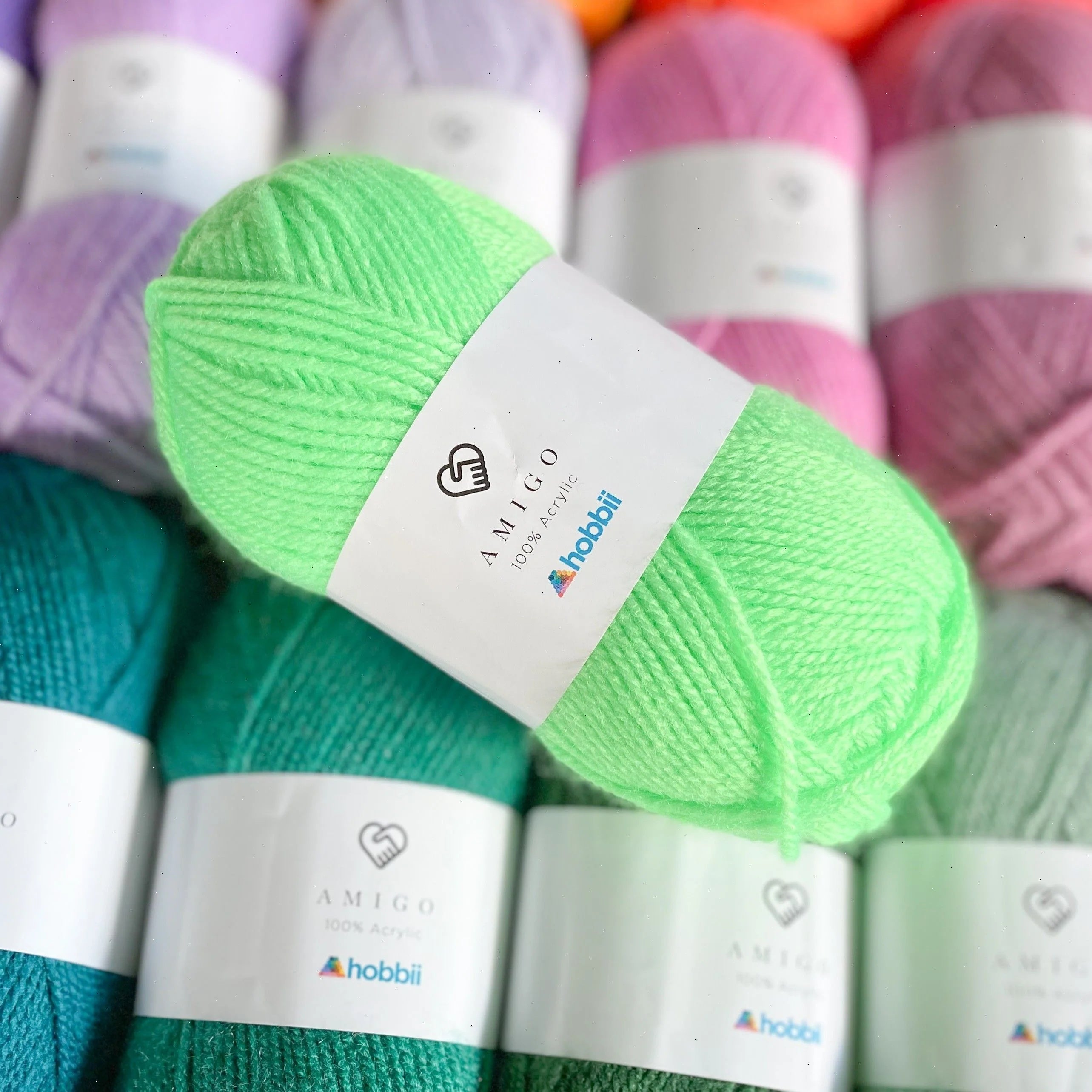 Amigo is a really soft yarn with wonderful, airy volume. It is produced from 100% HB acrylic of very high quality and comes in an enormous selection of colors.