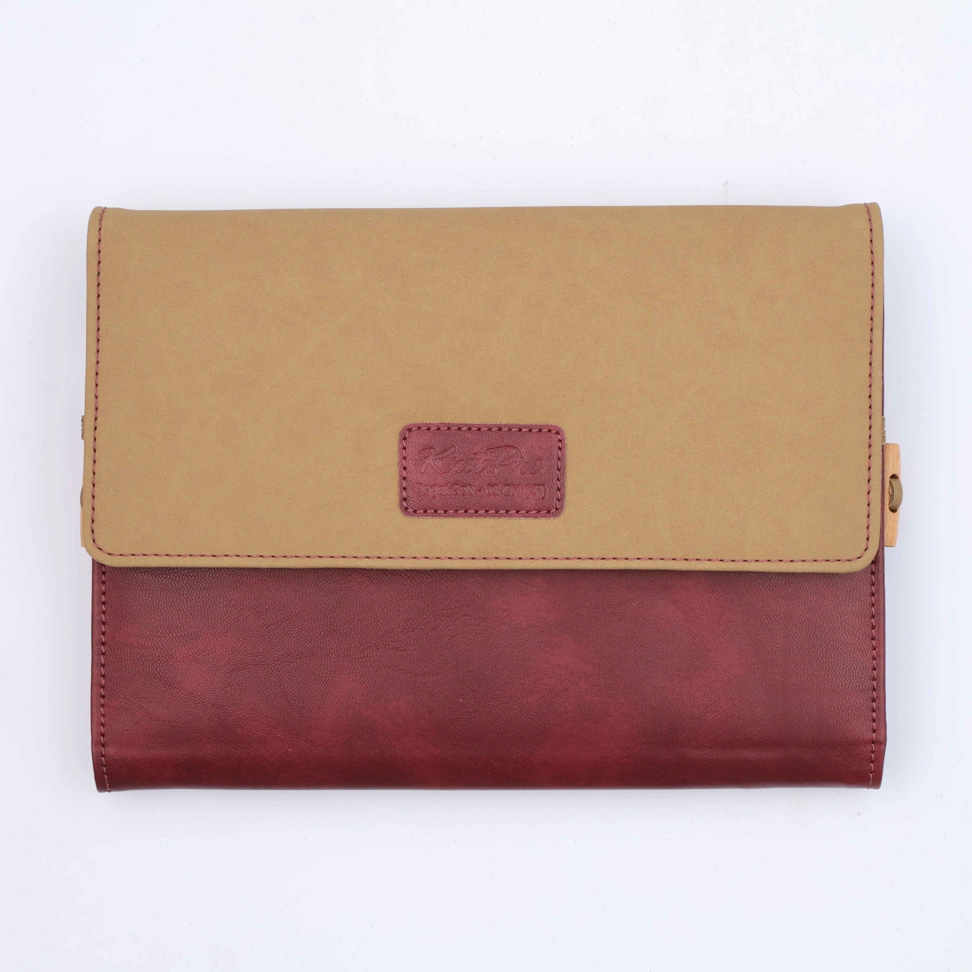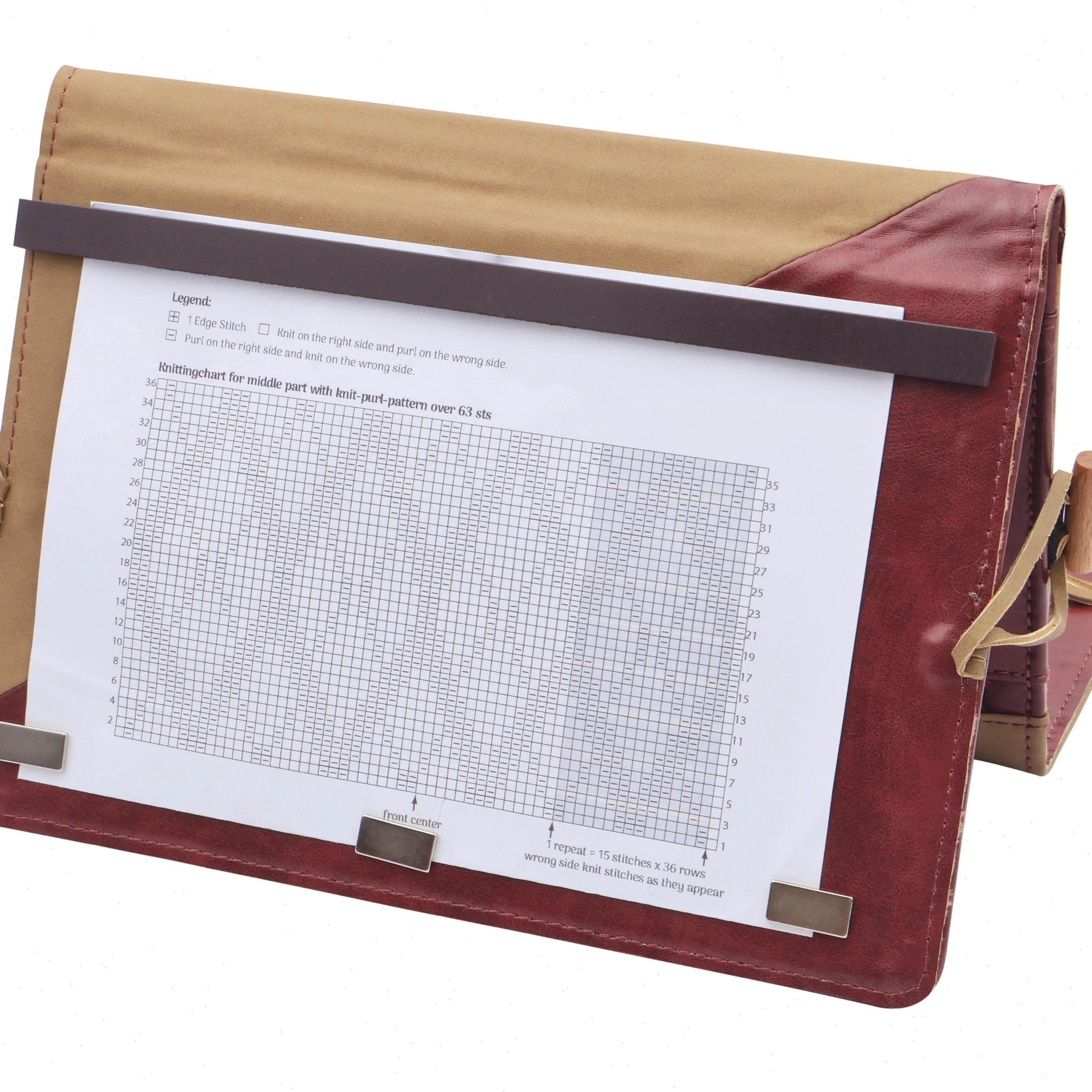 In addition, the needles are delivered and stored in a beautiful, premium quality case. Not only is it nice to look at with its beautiful bordeaux and beige colors, but it’s also super practical, since it can also be used as a pattern holder. Magnets included.