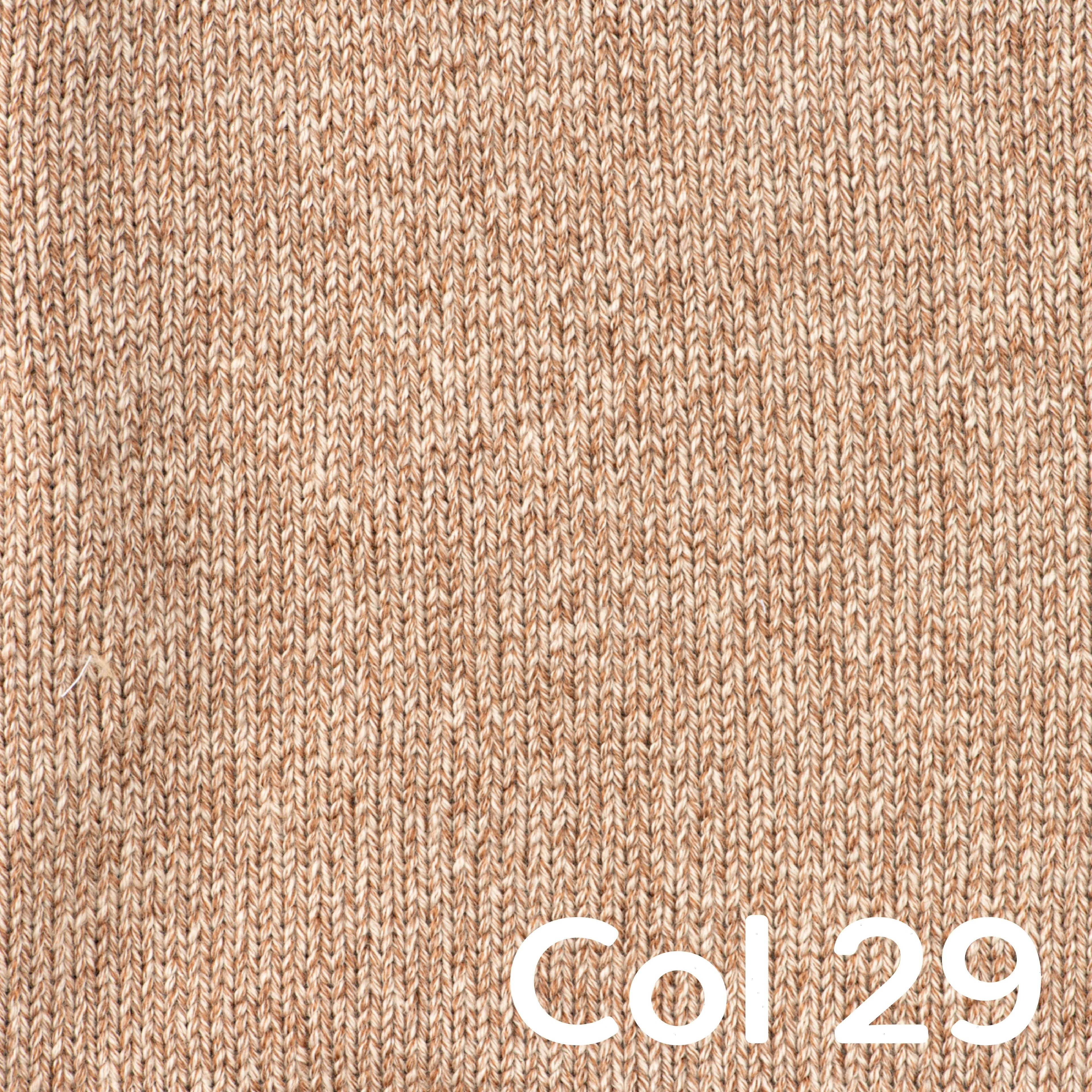 Happy Place Melange is a lovely 50% cotton and 50% wool blend that unites the best qualities from both fibers: the breathability and strength of cotton with the natural warmth and softness of wool. This makes the yarn perfect for projects that can be worn year-round.